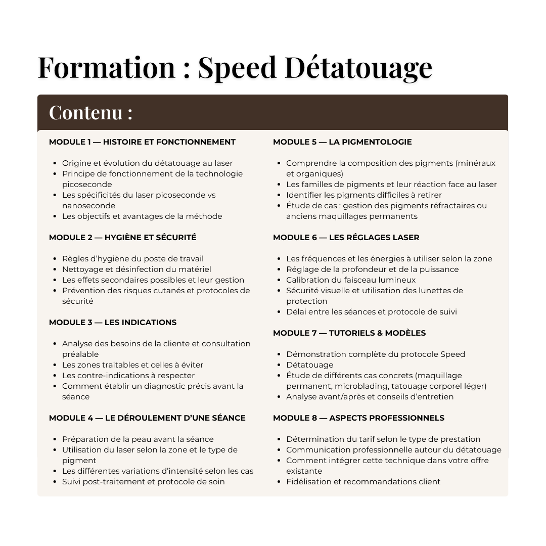 Idéale pour les techniciennes souhaitant compléter leur offre corrective ou débuter dans la dermo-correction du sourcil.